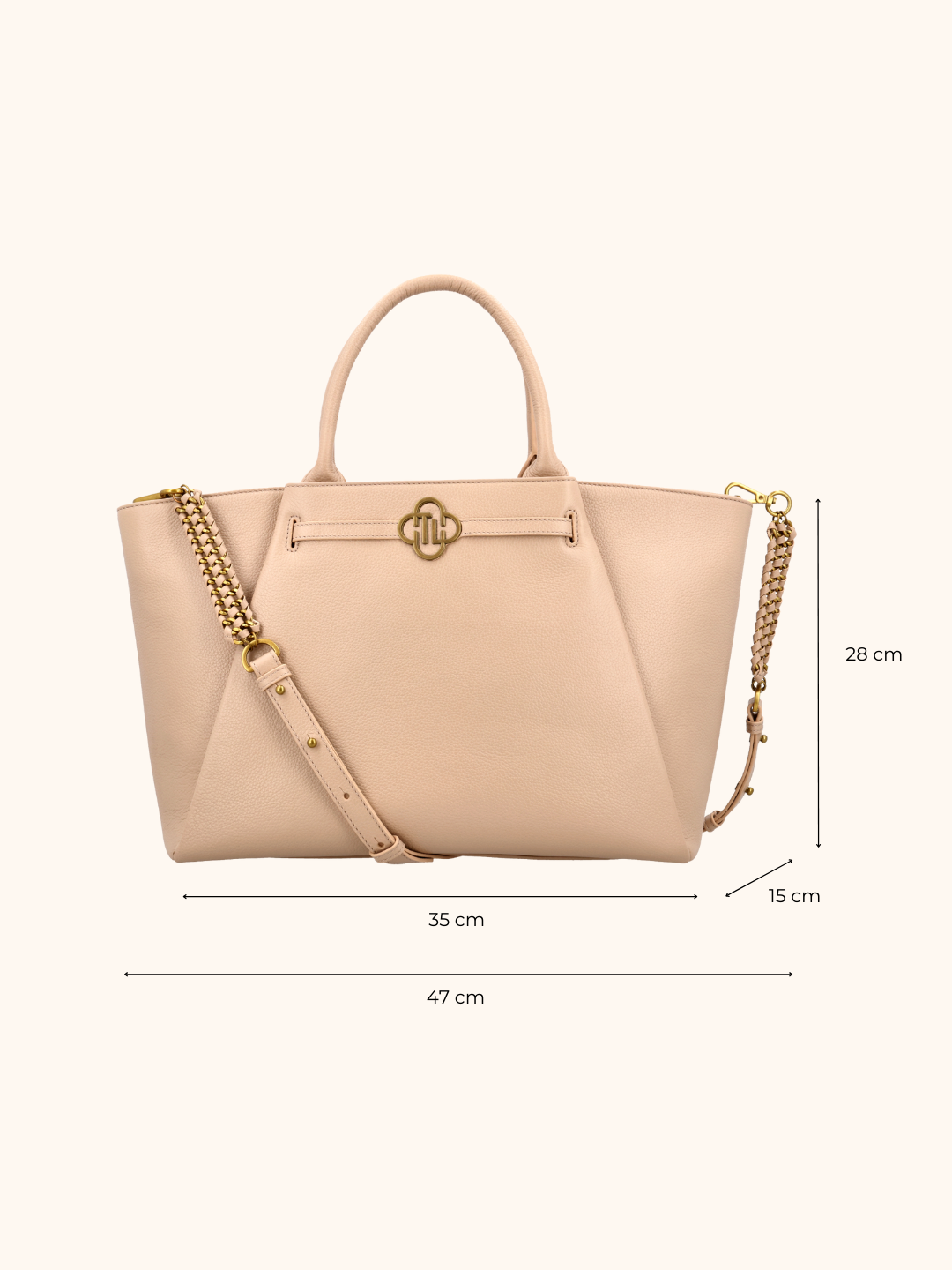 Je sleutels klik je eenvoudig vast aan het elegante sleutelhaakje en in het verborgen voorvak met magnetische sluiting berg je je essentials veilig én snel bereikbaar op. Dankzij de uitneembare laptophoes gebruik je de Nikki zowel als stijlvolle werktas als elegante handtas voor elke dag.