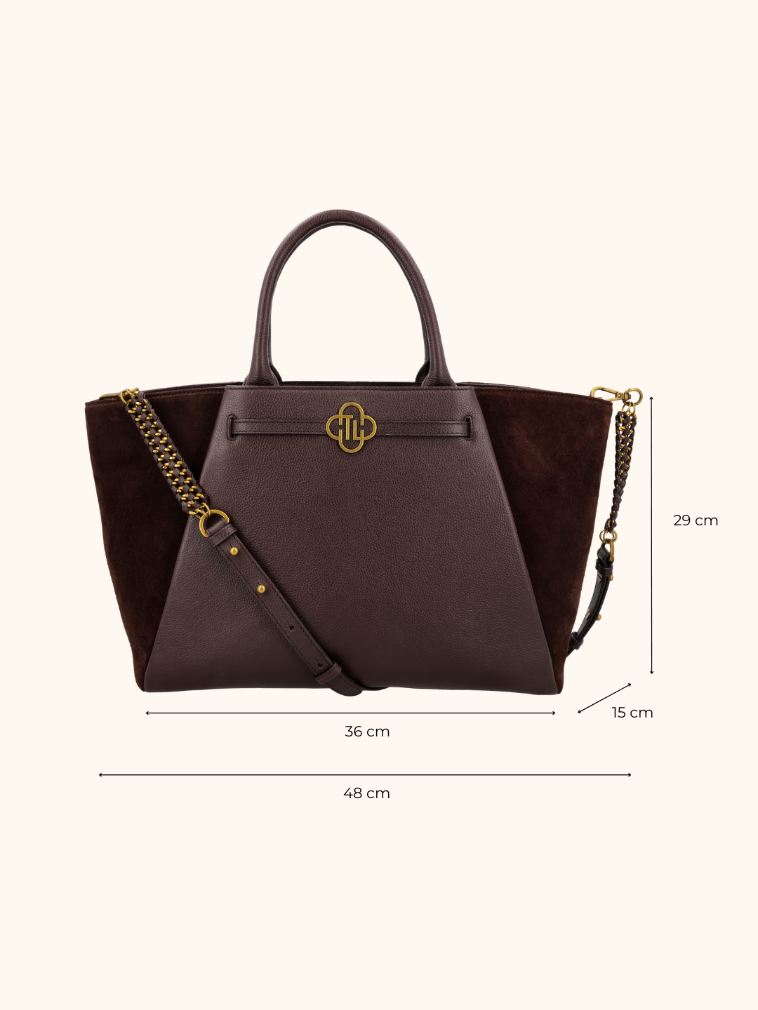 De Nikki Light is een elegante donkerbruine dames laptoptas voor laptops van 14 en 15 inch, ontworpen om elke dag, de hele dag te dragen. Deze georganiseerde dames laptoptas combineert tijdloze elegantie met slimme functionaliteit en is daarmee de perfecte metgezel voor werk en daarbuiten.