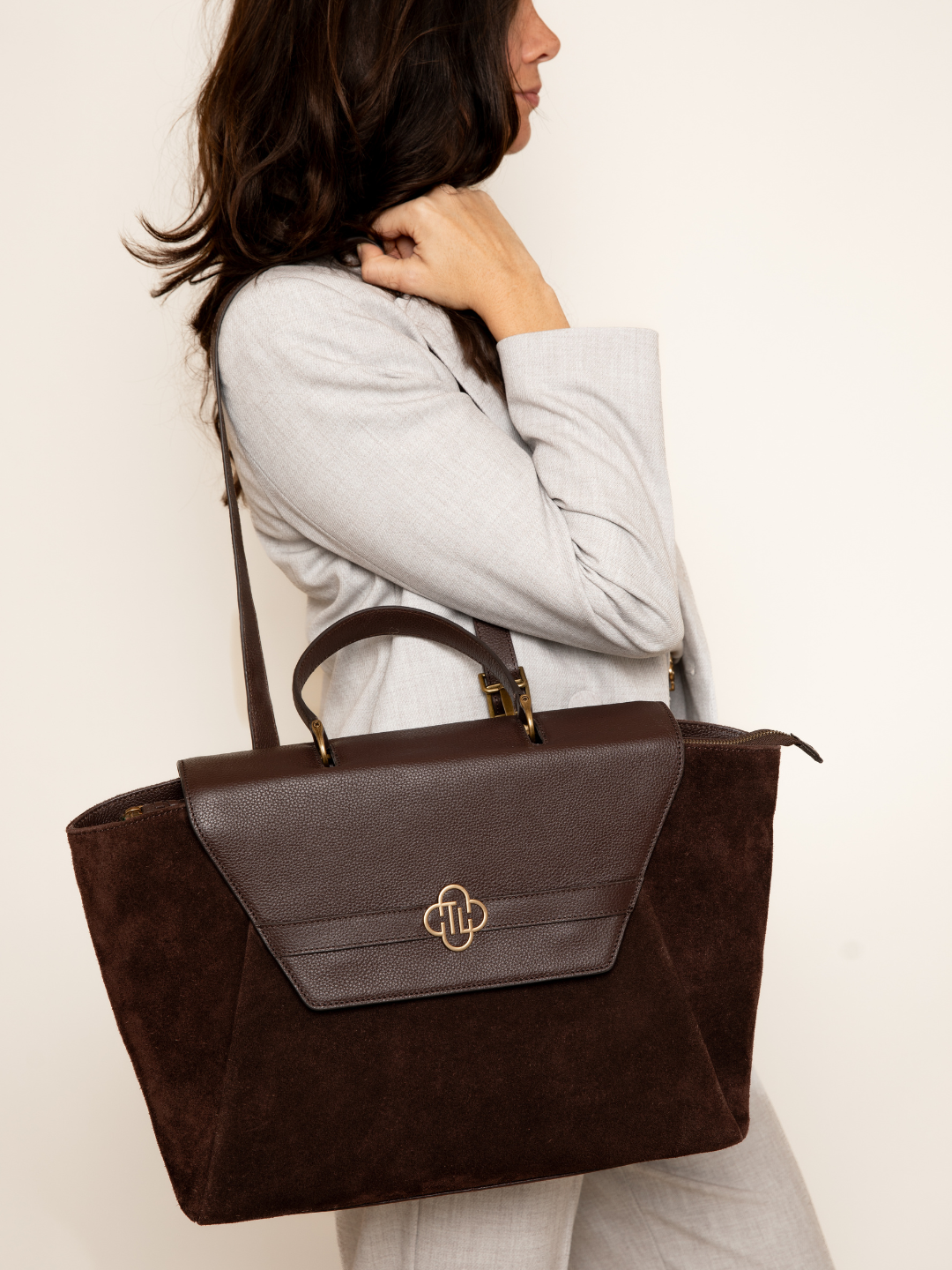uitneembare laptophoes gebruik je haar als werktas, weekendtas of vrijetijdstas. De leren tas heeft een slimme indeling met vakken voor o.a. pennen, waterfles, oplader en telefoon, plus een handig sleutelhaakje.