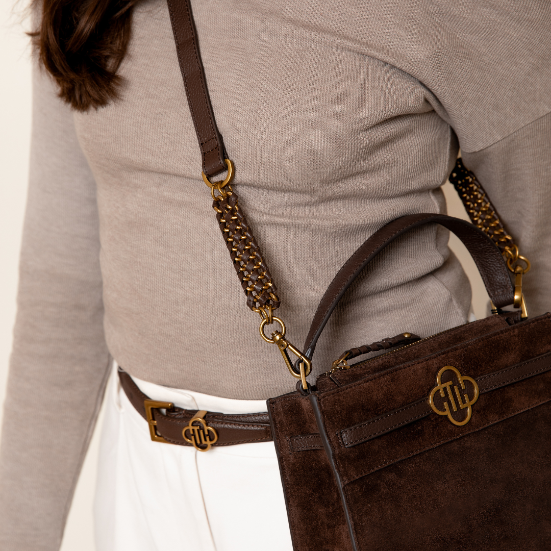 Onze Basil is zoveel meer dan alleen een leren schouderband. Wil je je tas die al een paar jaar in je collectie zit opfleuren of wil je je outfit extra elegantie geven? De Basil is perfect! Met zijn ketting is het een super unieke schouderband en zie je er overal geweldig uit.