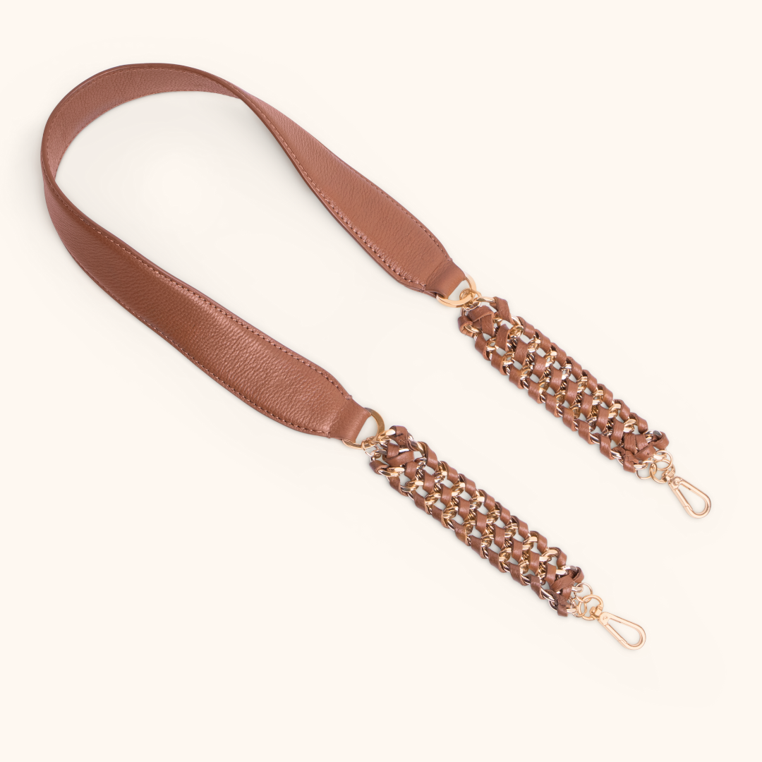 Onze Basil is zoveel meer dan alleen een leren schouderband. Wil je je tas die al een paar jaar in je collectie zit opfleuren of wil je je outfit extra elegantie geven? De Basil is perfect! Met zijn ketting is het een super unieke schouderband en zie je er overal geweldig uit.