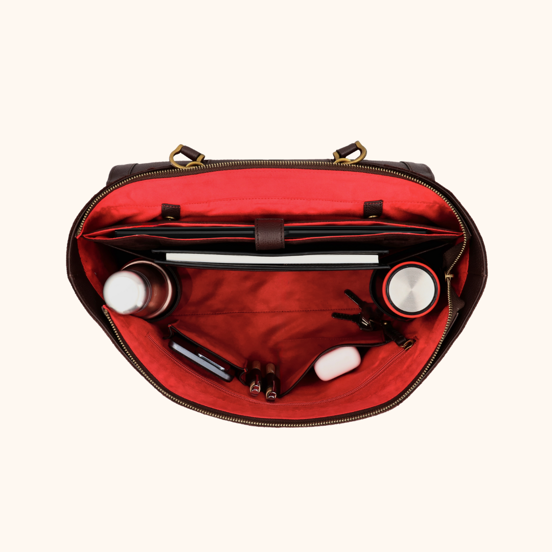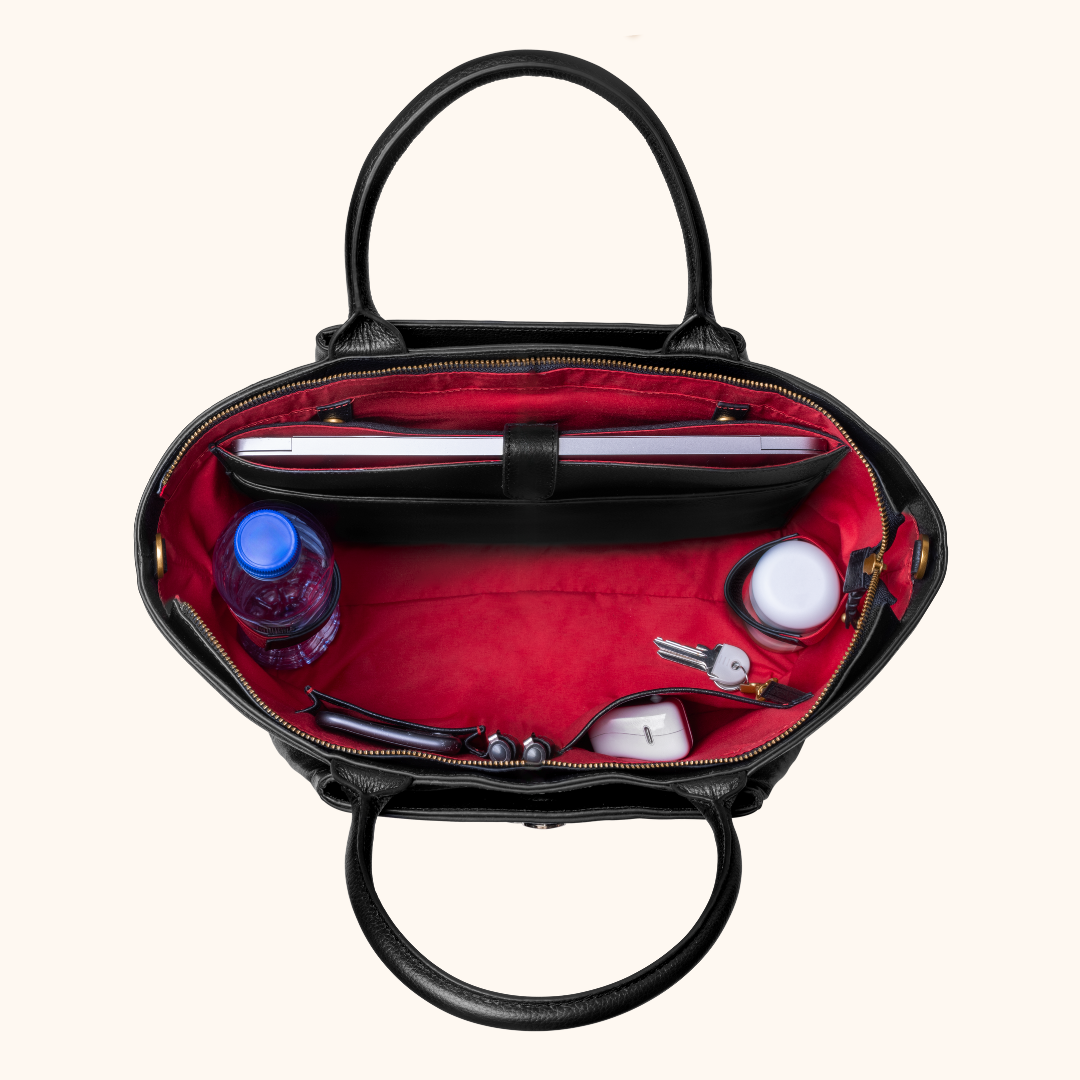 De elegante en perfect georganiseerde laptoptas die we hebben gemist in ons drukke zakelijke leven. Met meerdere compartimenten voor jouw waterfles, paraplu, mobiele telefoon, notitieboekjes, pennen, haakje voor sleutels en een padded deel voor jouw laptop.