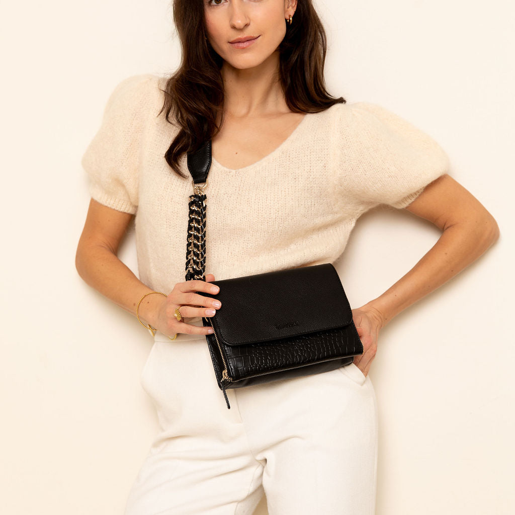 Onze zwarte crossbody tas, genaamd de Lilou, is om vele redenen een onmisbare handtas. Draag hem bij casual outfits of iets meer gekleed, draag hem hoog op het lichaam voor een meer modieuze stemming, of lager op de heup voor supergemakkelijke toegang en een meer ontspannen vibe.