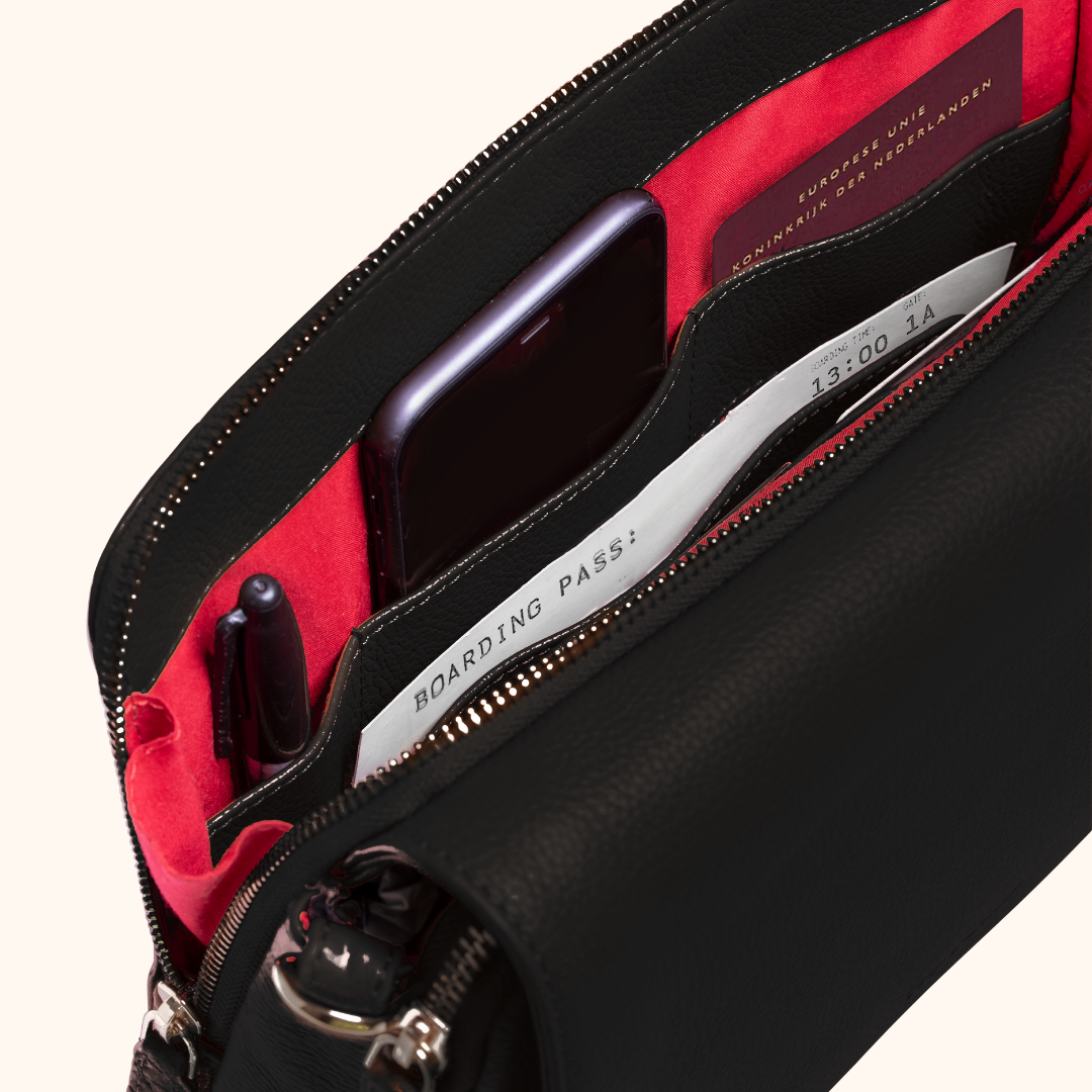Our Sylvie is the perfect companion for every occasion. And when we say every, we mean every! She has enough space for your favorite book, iPad, e-reader, and water bottle. We also made several compartments, so you have a space for your AirPods, phone, pens, keys and a built-in wallet to fit your passport and boarding pass. The Sylvie: your perfect company for traveling, festivals, work, dinner, or going out. Do you want to complete your look? Basil is the best fit for Sylvie. Click here to view our Basil